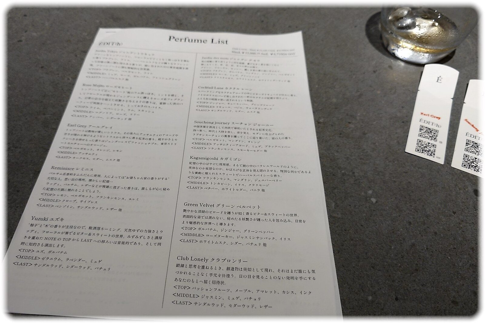 香水のメニューも拝見しました。
